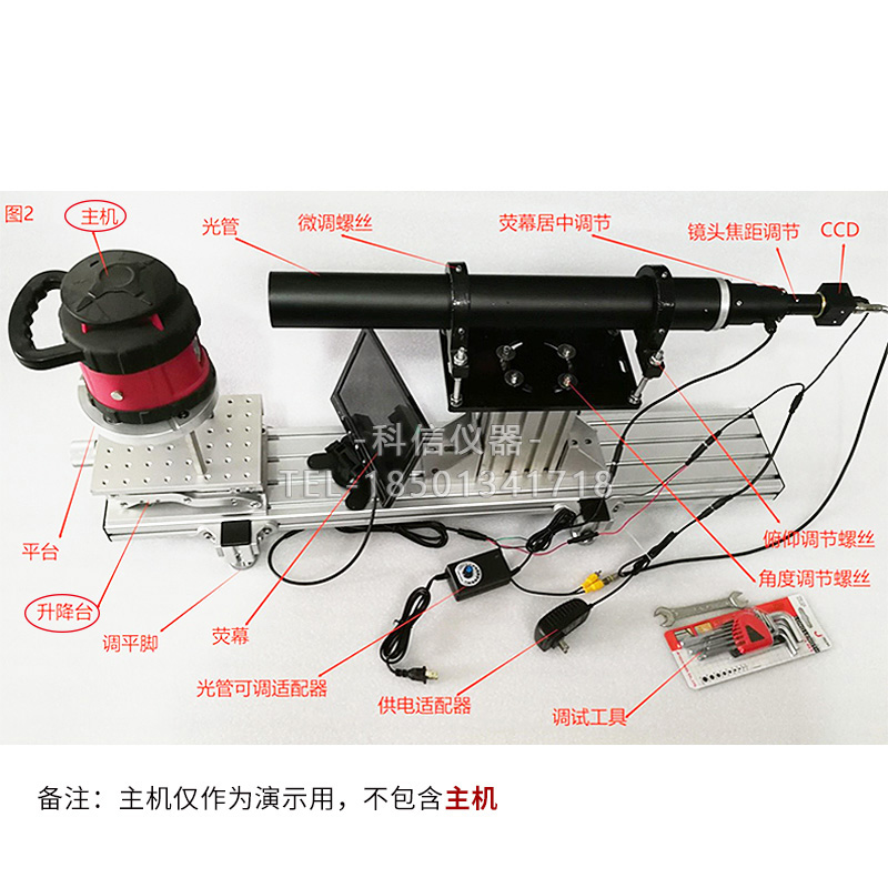 1,單管維修校正臺(tái)主機(jī) (選購(gòu)) 1套 2,顯示器(含多功能支架) 1臺(tái) 3,F550光電一體平行光管含CCD 1套 4,調(diào)試工具一套。 1套 6,平行管原理說(shuō)明書(shū) 1份