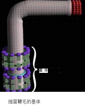 鞭毛的旋轉(zhuǎn)速度是非常快的,每秒鐘旋轉(zhuǎn)兩百到一千多轉(zhuǎn),比一般的電動機要快得多,鞭毛的高速旋轉(zhuǎn)是由其附著于菌體上的基體旋轉(zhuǎn)帶動的,基體實際上就是鞭毛的基部,它由一個中軸套上兩個或四個環(huán)構(gòu)成,鑲嵌固定在細菌的體表中,在科學(xué)家的眼中,基體簡直就是一臺精巧的納米機械—分子馬達,但這個馬達并不是靠電流驅(qū)動,而是用伴隨著細胞膜兩側(cè)質(zhì)子梯度的消失產(chǎn)生的生物能量來驅(qū)動,鞭毛馬達還可以轉(zhuǎn)向從而使菌體發(fā)生翻滾進而改變細菌的運動方向,事實上細菌在游動時也并不是單純地一直朝前游,而是伴隨著不時的隨機翻滾轉(zhuǎn)向,但從表觀上看仍表現(xiàn)為細菌的前行。